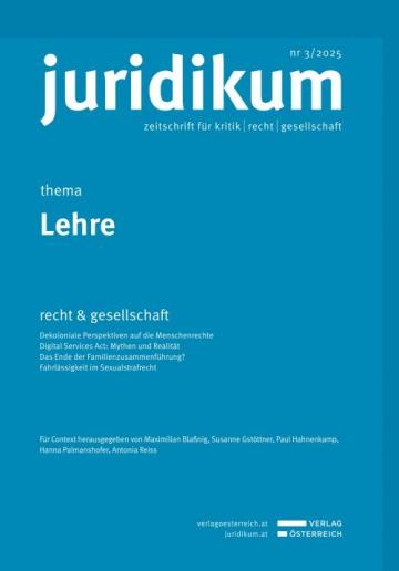 Das juridikum ist auch als eJournal in der Verlag Österreich eLibrary erhältlich. Hier können Sie sowohl die gesamte Zeitschrift als auch Einzelartikel kaufen, sofort downloaden und mit nur wenigen Klicks alle Zitierungen für wissenschaftliche Arbeiten exportieren.
